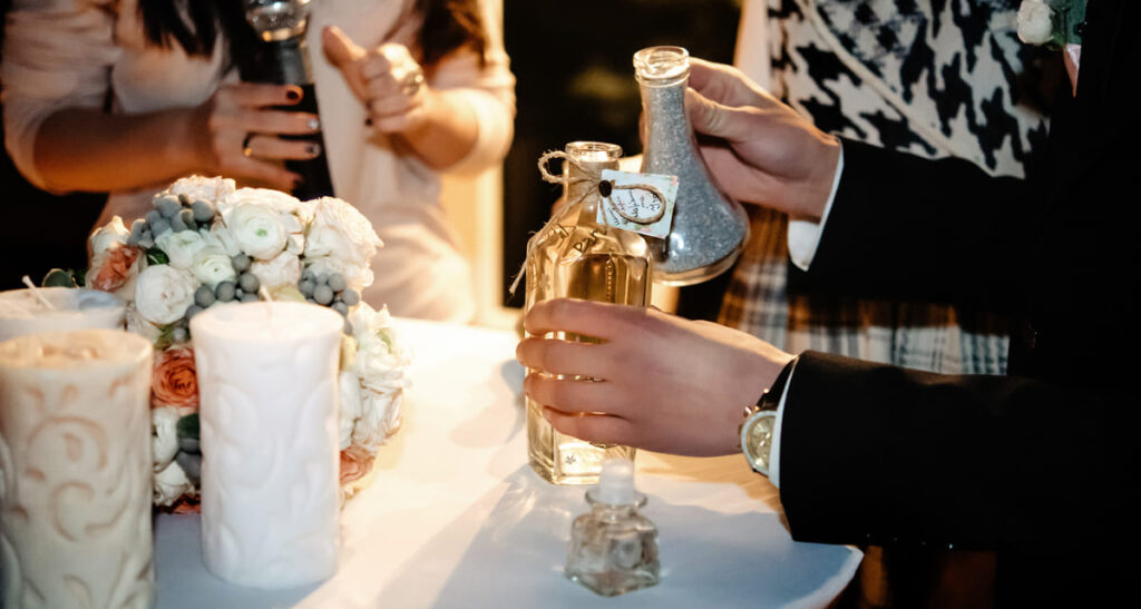 El ritual de la arena suele incluirse dentro de la boda civil, justo después del intercambio de votos o como parte final antes de las firmas. Sin embargo, también puede hacerse en bodas religiosas. Para esto, buscaremos un momento especial de la ceremonia (y avisaremos previamente al oficiante para que esté de acuerdo).